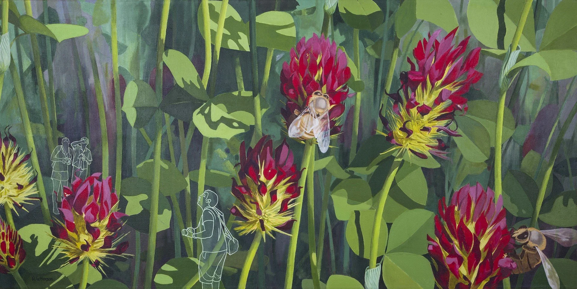When my crimson clover cover crop bloomed it came alive with pollinators. It was a humming busy world, very focused and completely non-human. What did it look like from their perspective? I was inspired to explore their world and see what they saw.